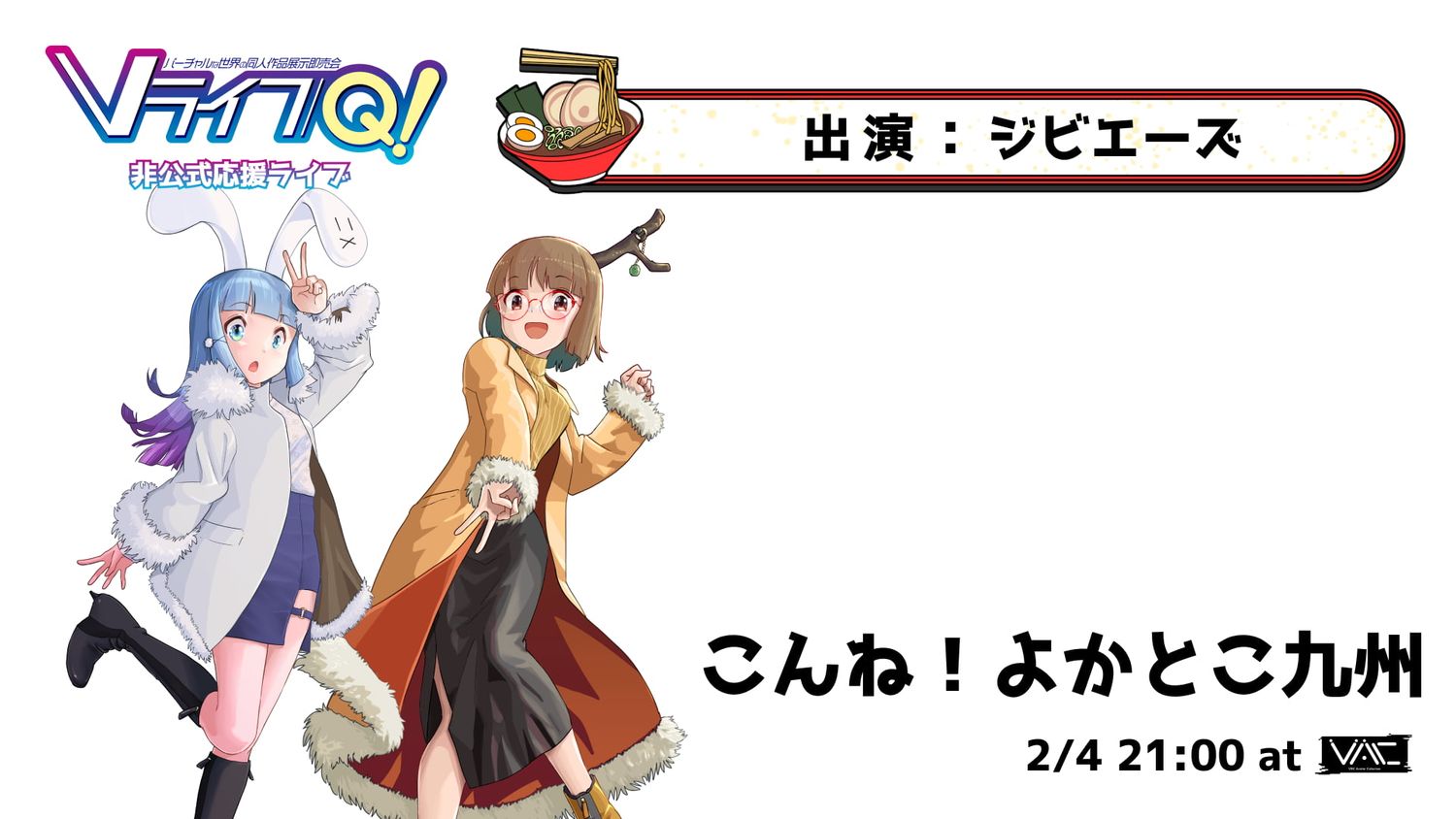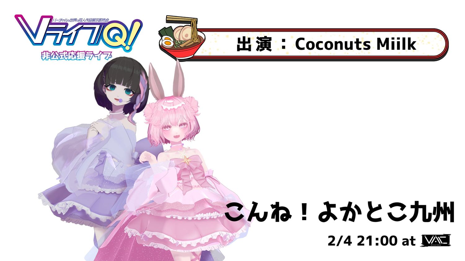 2/28 福岡県久留米市の久留米シティプラザにて開催予定のリアルイベント「VライフQ!」の開催を記念した非公式応援ライブを開催します。