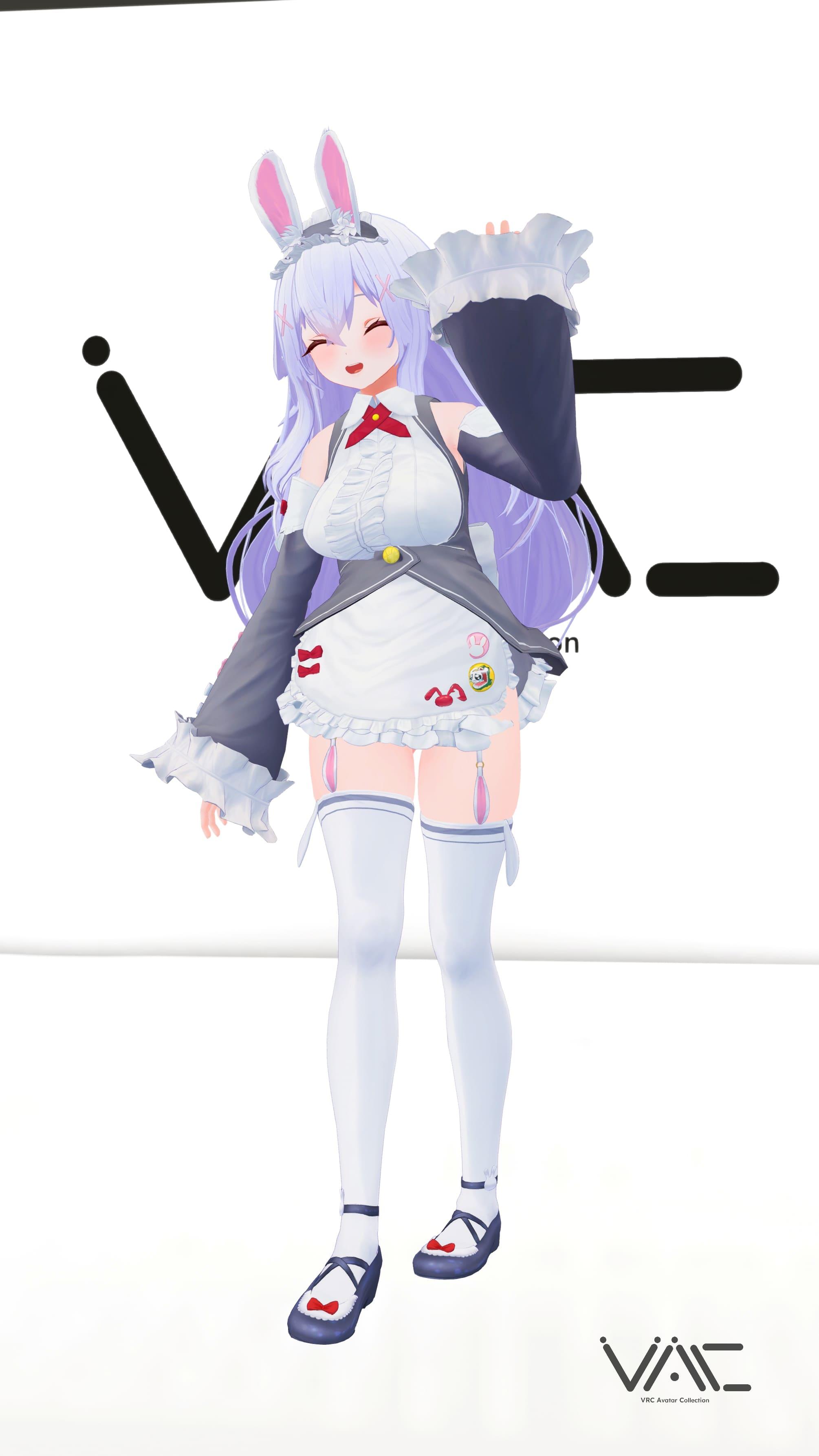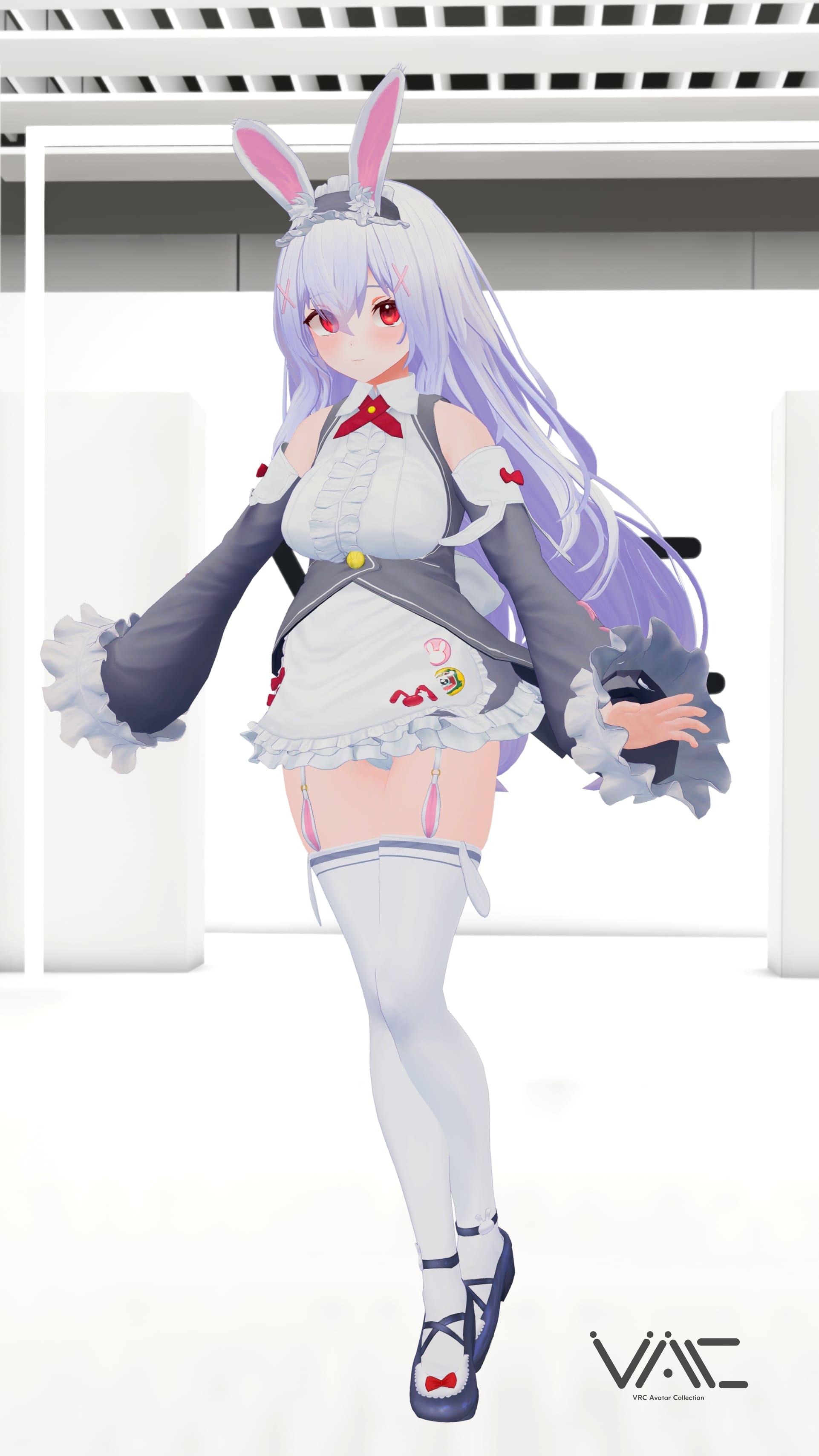「INABA」- うさみみメイドの愛らしいデザインに、エプロンや缶バッジなどのキュートなディテールが満載。プロアニメーターA-tuyさん制作のかわいいAFKモーションも魅力です。