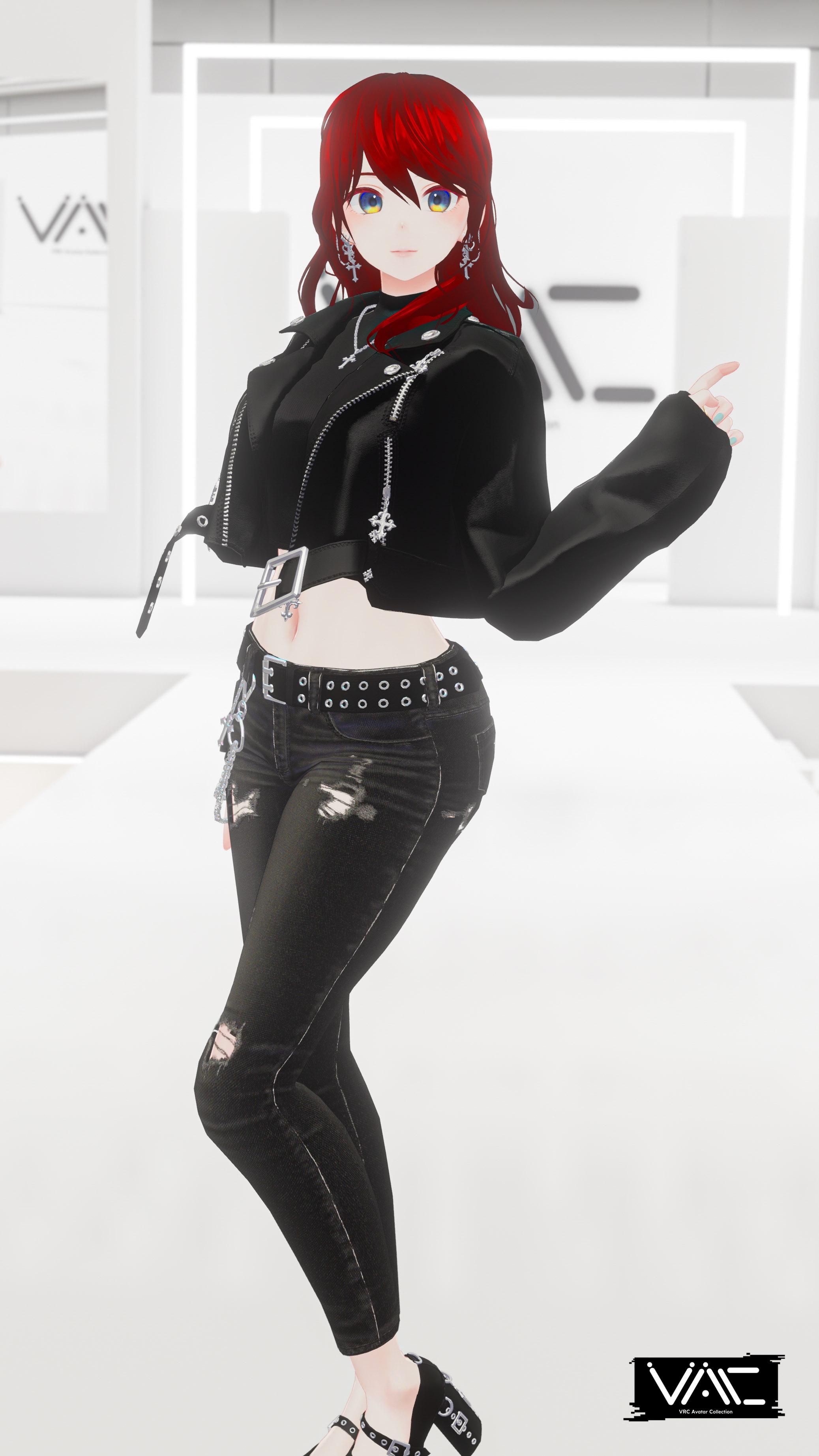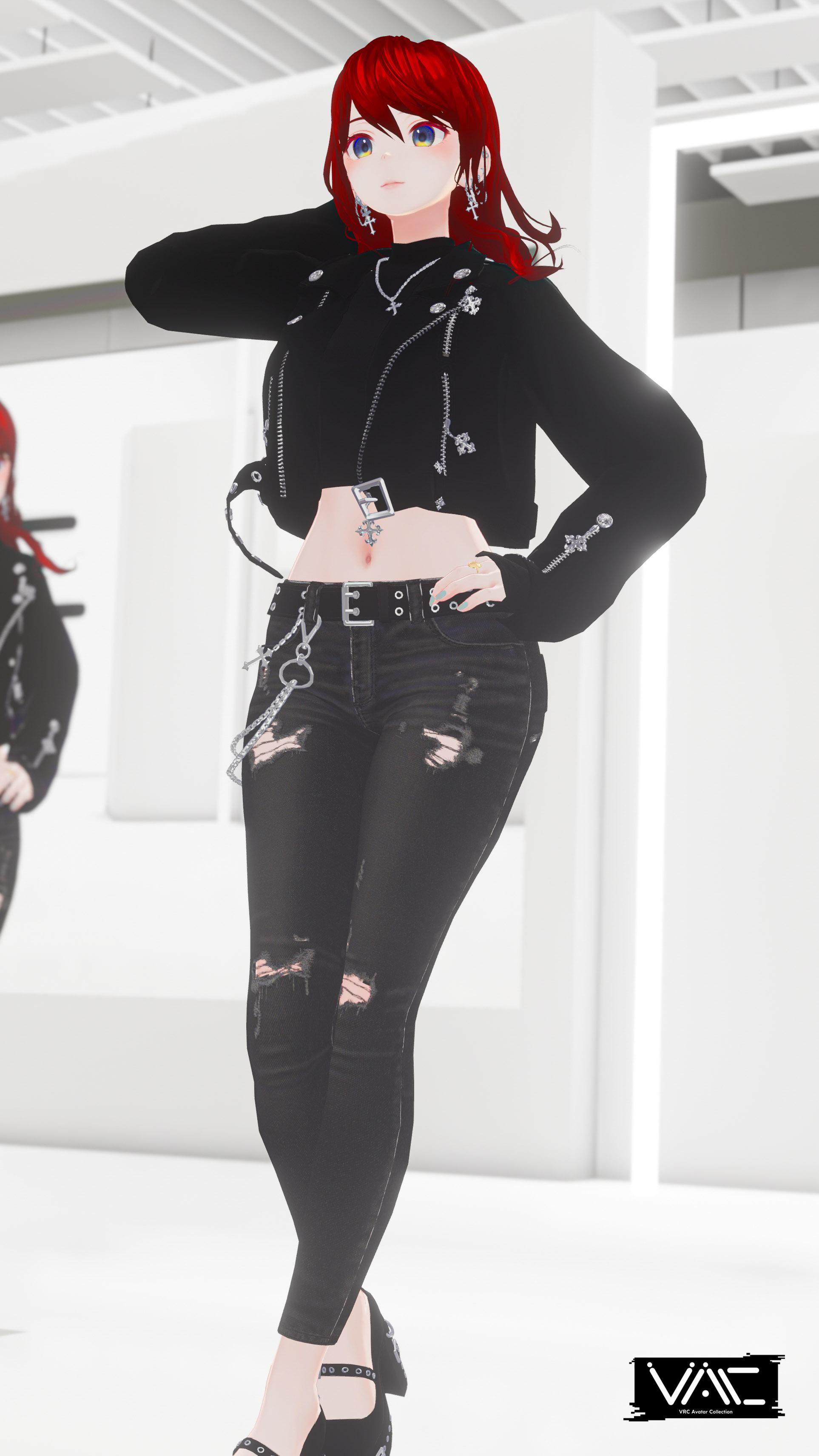 色んなテクスチャでデニム、レザー、ニット、シースルーの雰囲気を出しました マテリアルで簡単に入れ替わって色んなコーディができます アクセサリーにも力を入れて、クロスイアリングとピアス、ネックレスそしてベルトがあります! ズボンとスカートには別々のアクセサリーがあるので好きなアクセサリーを使ってください