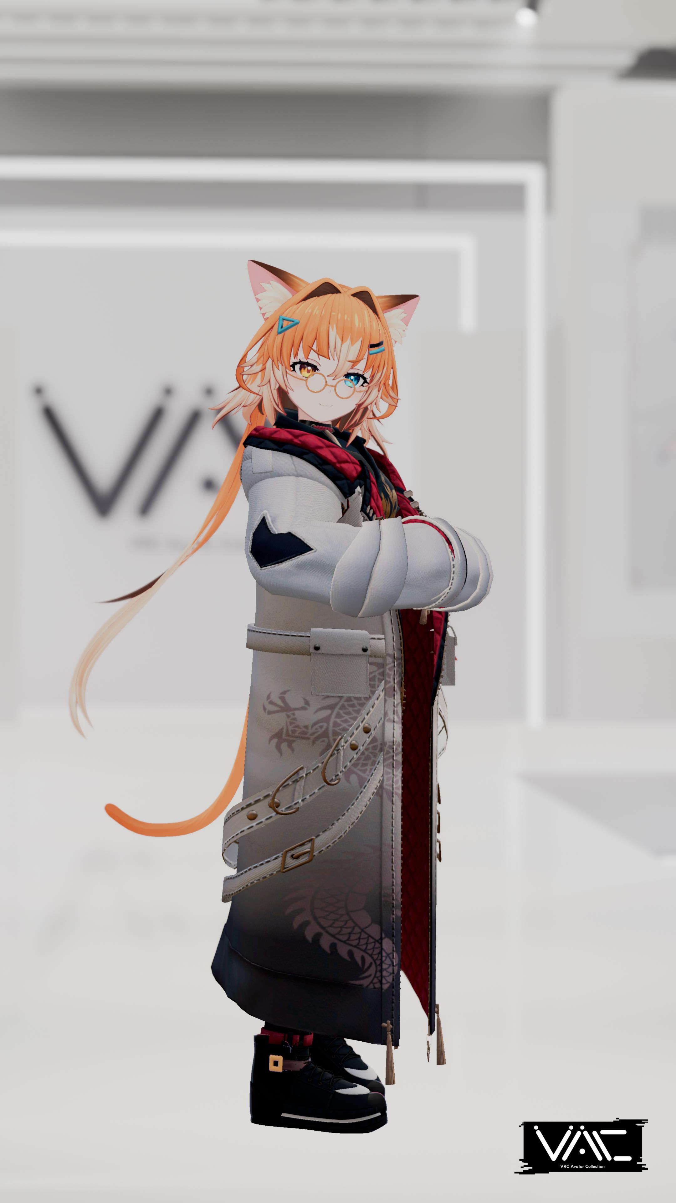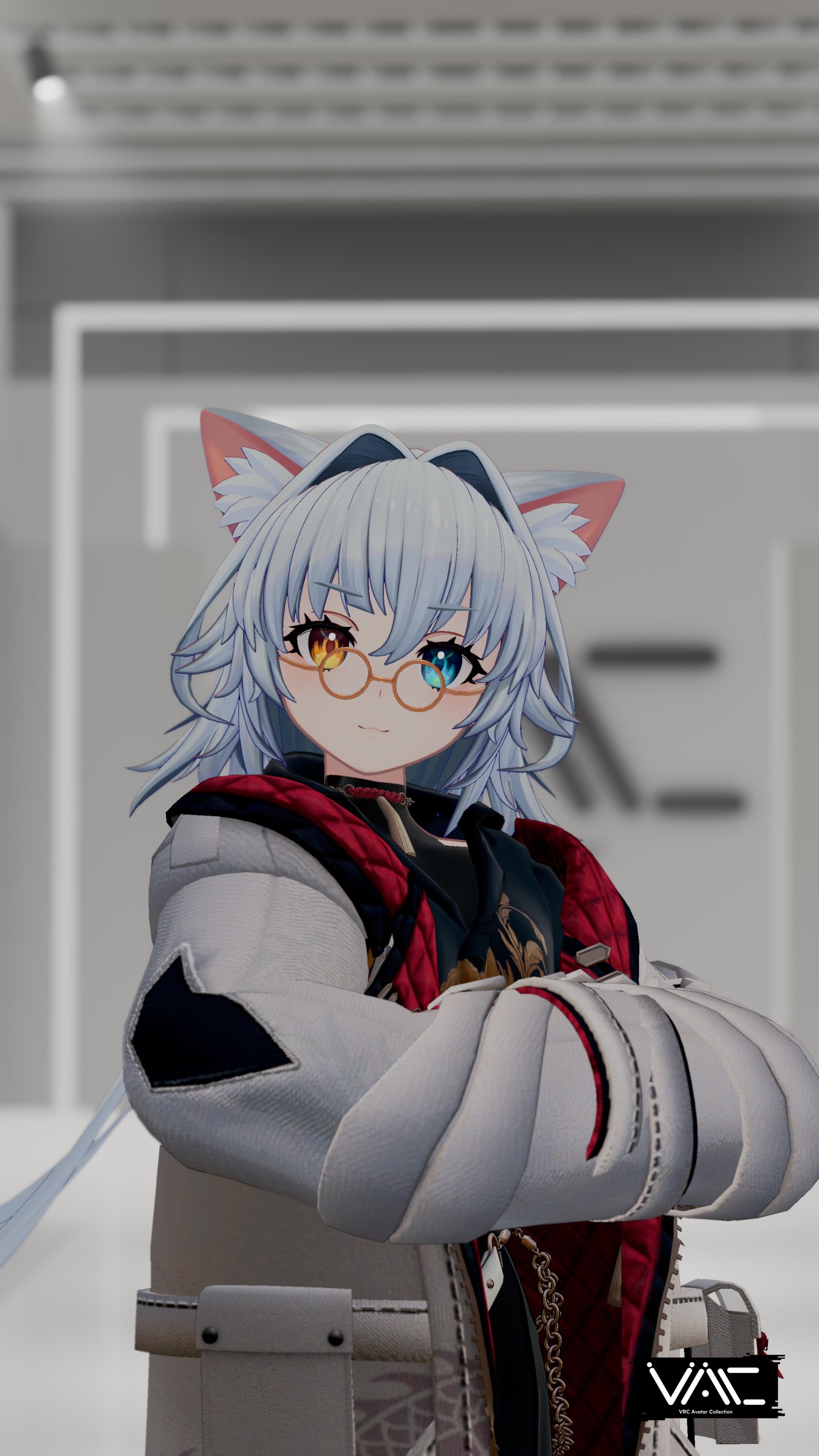 [チセ](Gallery用) 三毛猫の色味をモチーフにしてデザインしました。猫っぽくなるようにオッドアイだとか耳の裏にちょっと模様をつけています。 VRChat公式のpublicアバター欄にも軽量化にこだわったモデルが掲載されているので、ぜひ試してみてください。