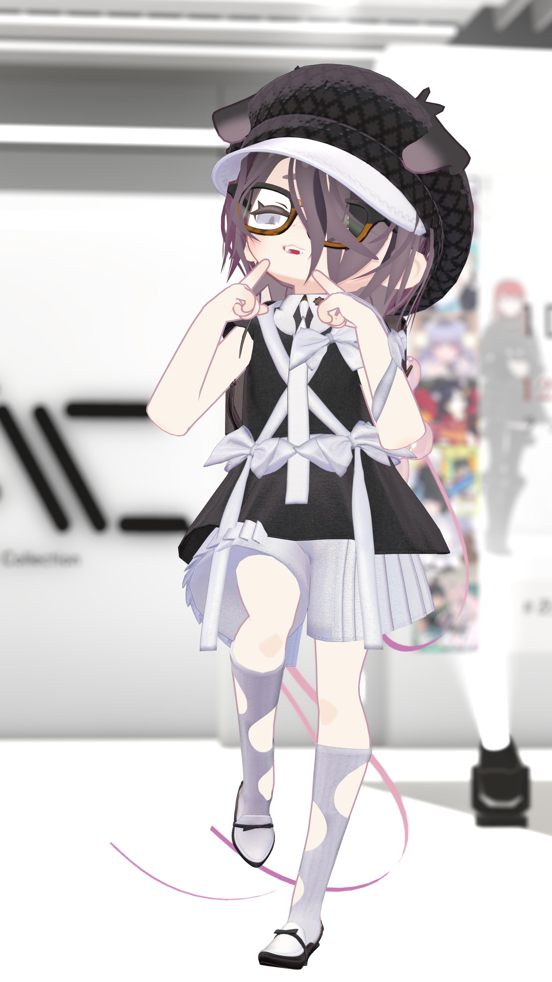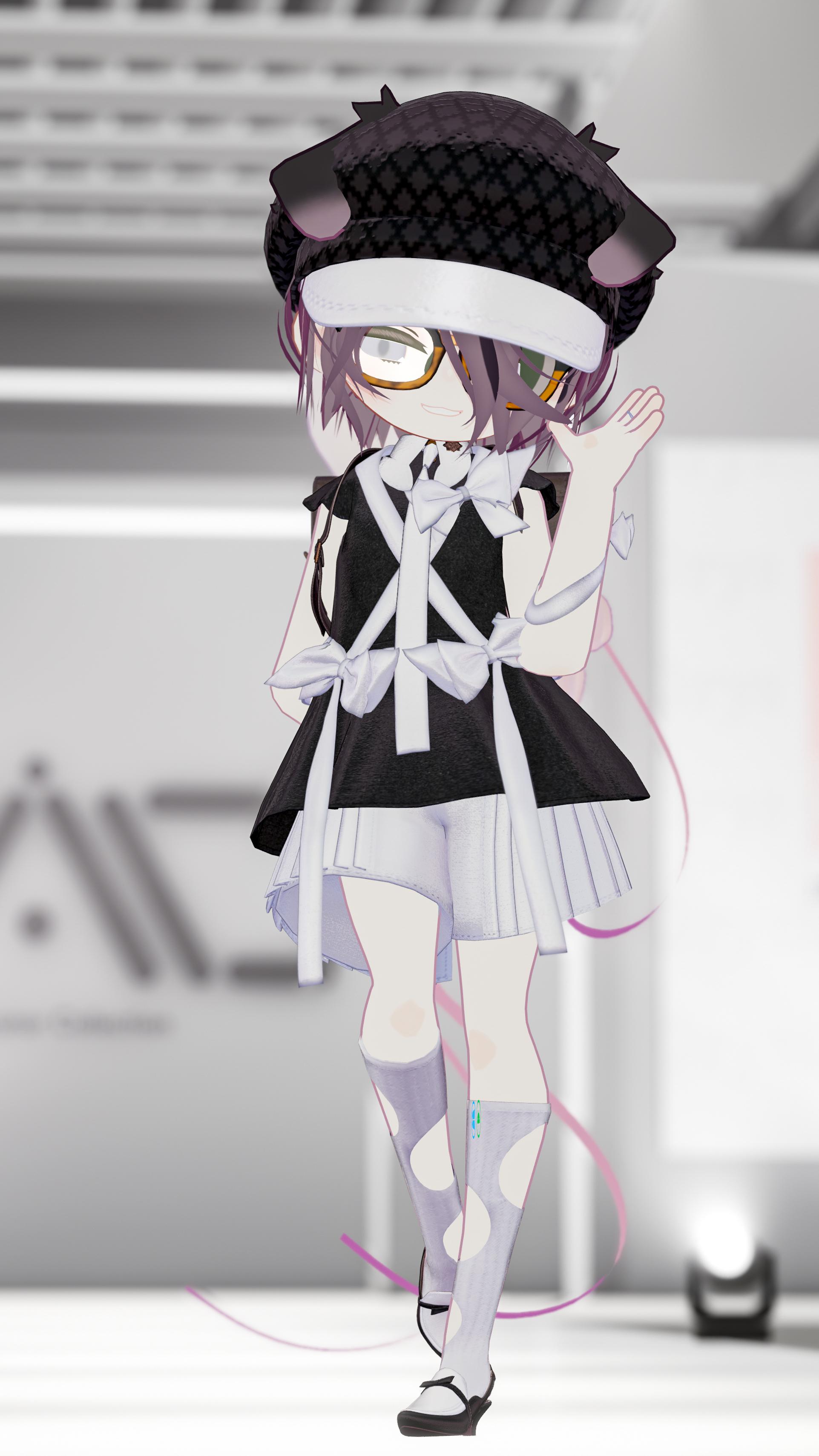 左右非対称に配置したリボンやプリーツ付きのショートパンツは、仕草や見る角度によって様々な表情を楽しめるよう配置しました。カバンは背負ったときのバランスや後ろ姿まで計算して作られており、演出の幅が広がるアイテムになっています。 今回のローファーもリアルでも作れるよう構造段階から検討を重ねて、説得力のある質感を追求いたしました。