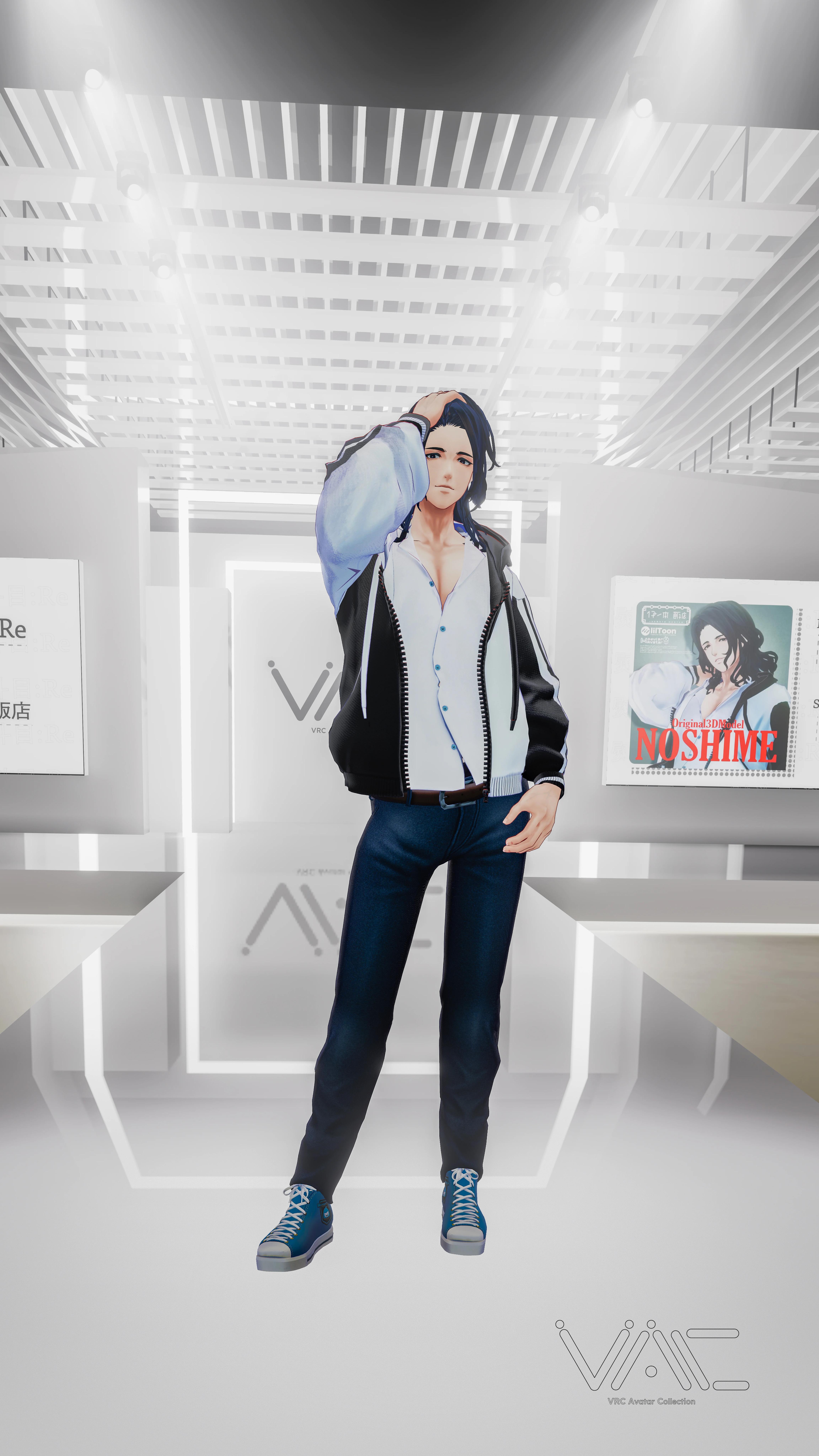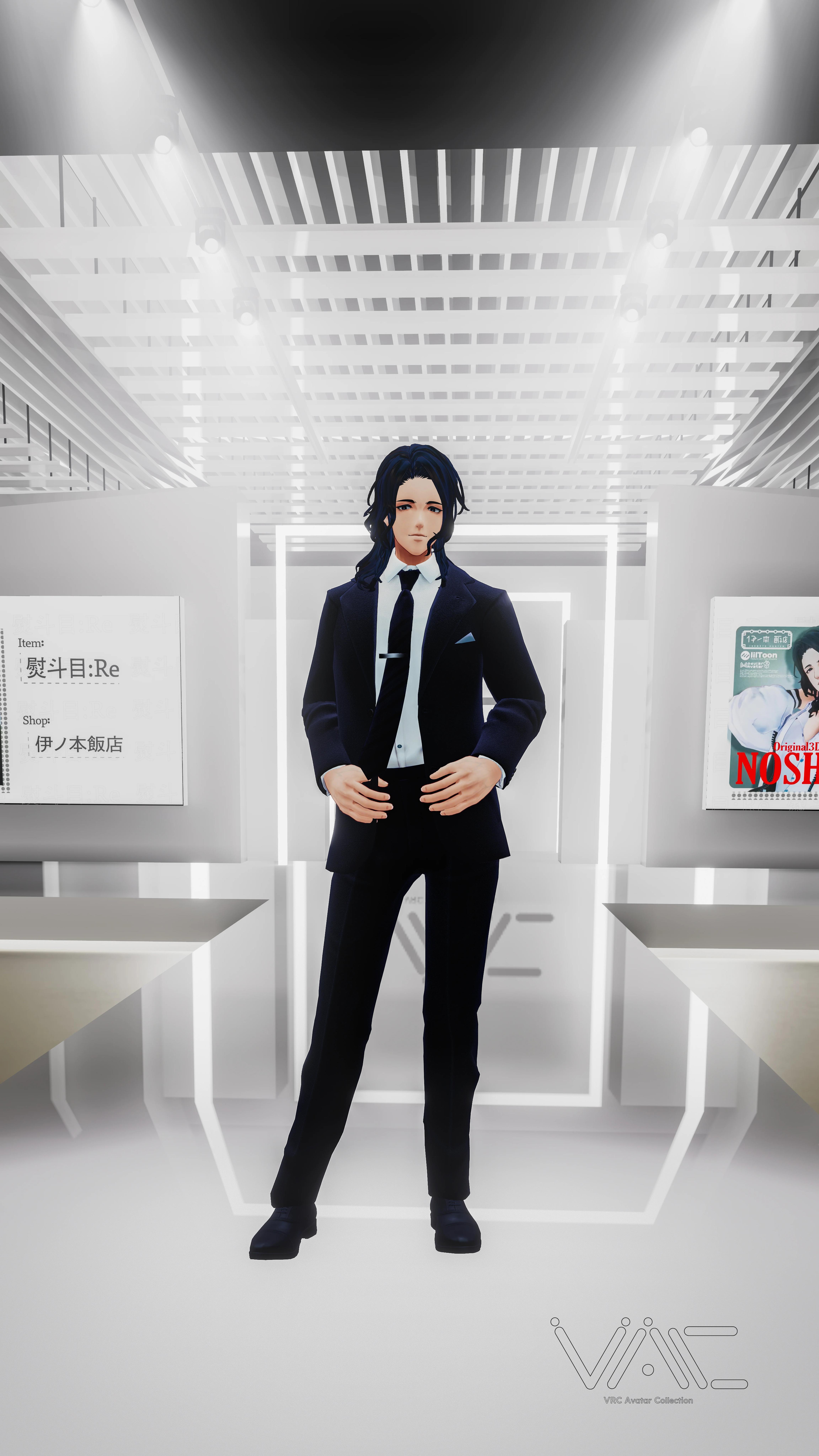 がっしりとした体格とセミロングヘアーが特徴のアバター。切れ長のたれ目が色気を誘います。現実の世界に住んでいるかもしれない。そんな雰囲気を目指して作成しました。