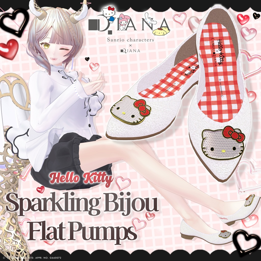 【サンリオキャラクターズ×クムウ_ダイアナ】ハローキティキラキラビジューフラットパンプス【22アバター対応】